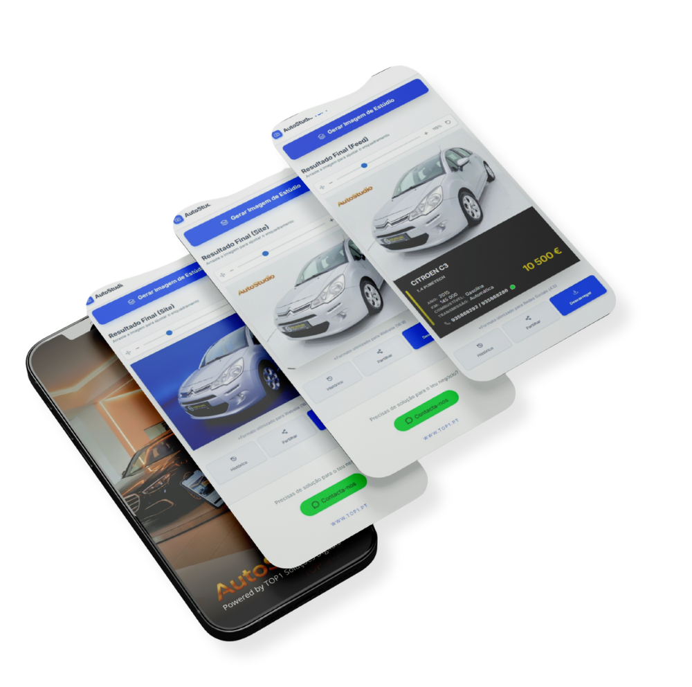 As tuas viaturas merecem ser apresentadas com a qualidade que o teu stand oferece.Com o AutoStudio AI TOP1, transformas fotos comuns em imagens de estúdio, com rapidez, precisão e consistência.